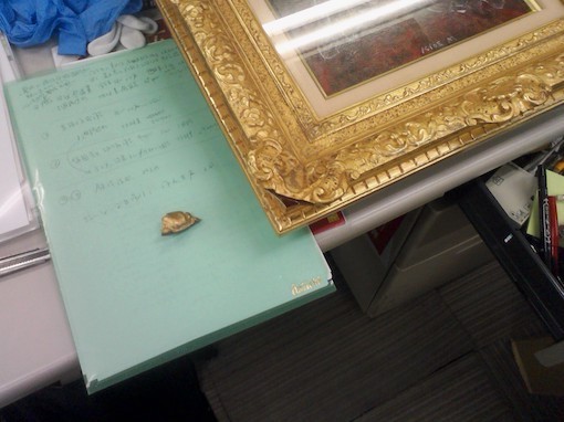 施行中に職人さんが油彩の額を破損させてしまったとのこと