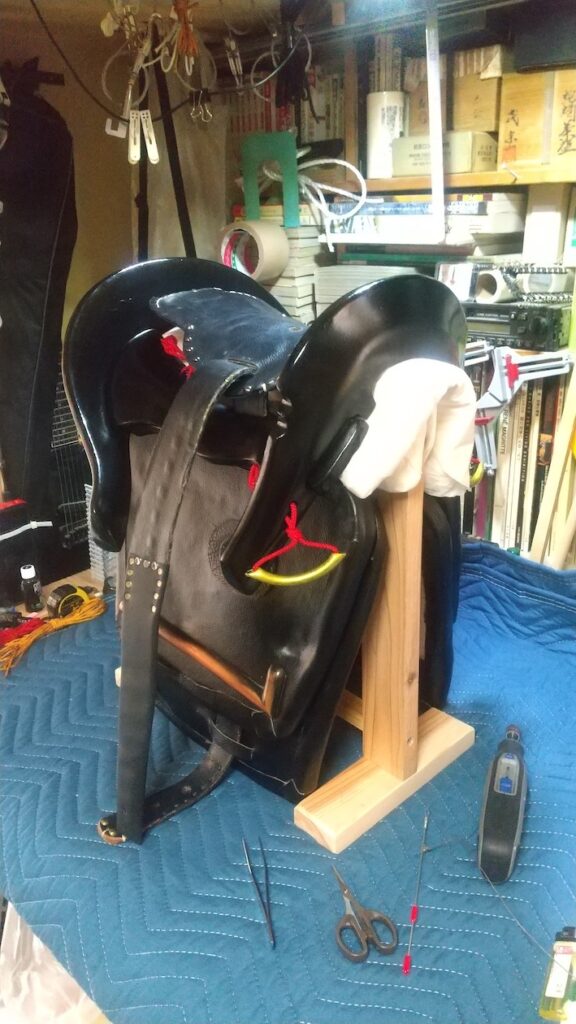 革帯の欠損部分を新たに作成、前輪・居木・後輪も分解清掃のうえ